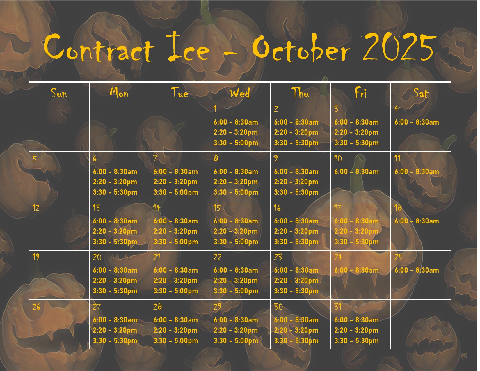 Skaters may walk on and pay per 30 minutes at the Front Desk or can register for their desired Contract/Freestyle Ice time online. Skaters may also purchase Contract Ice Punch Cards online or at the front desk.