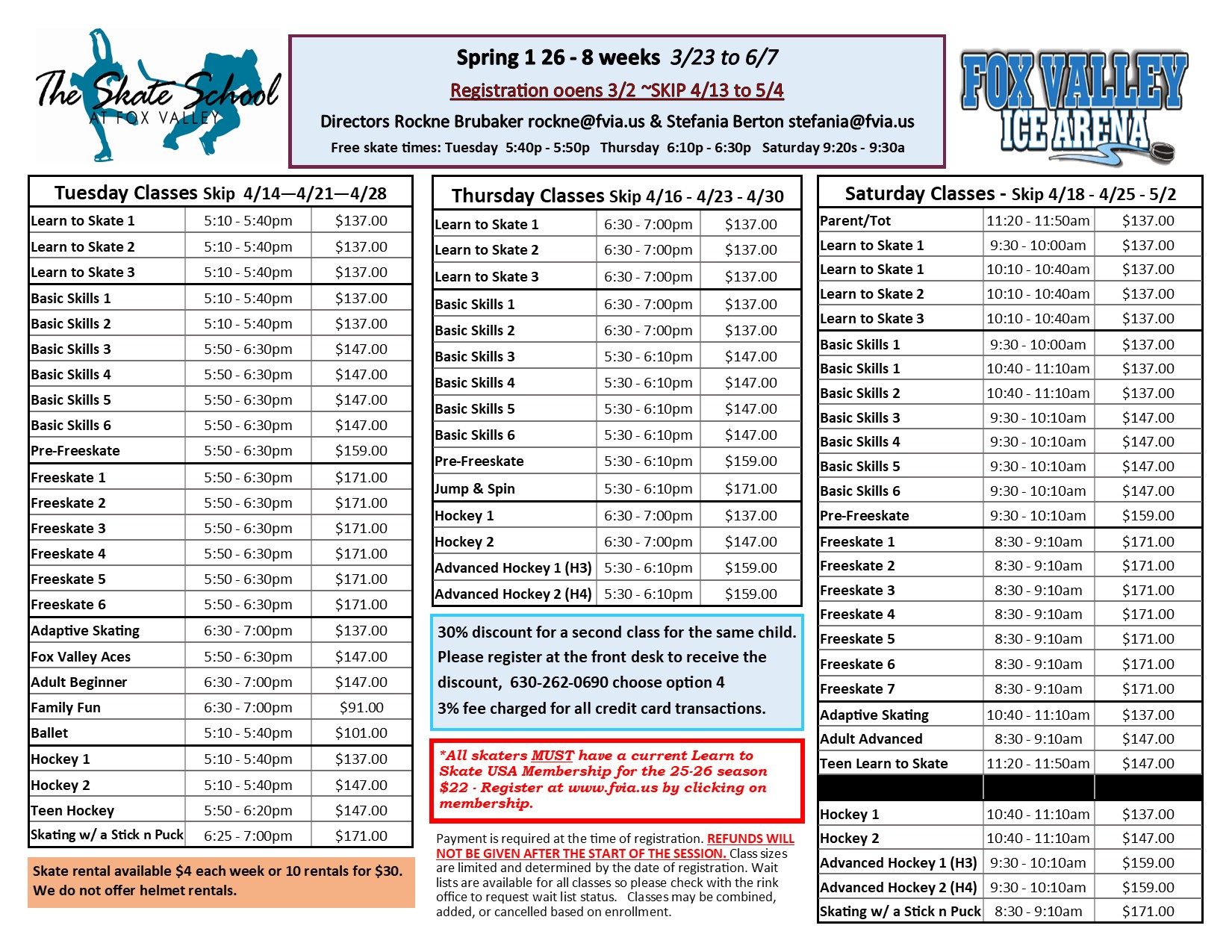To VIEW and PRINT the FIGURE SKATING and LEARN TO SKATE flier click HERE