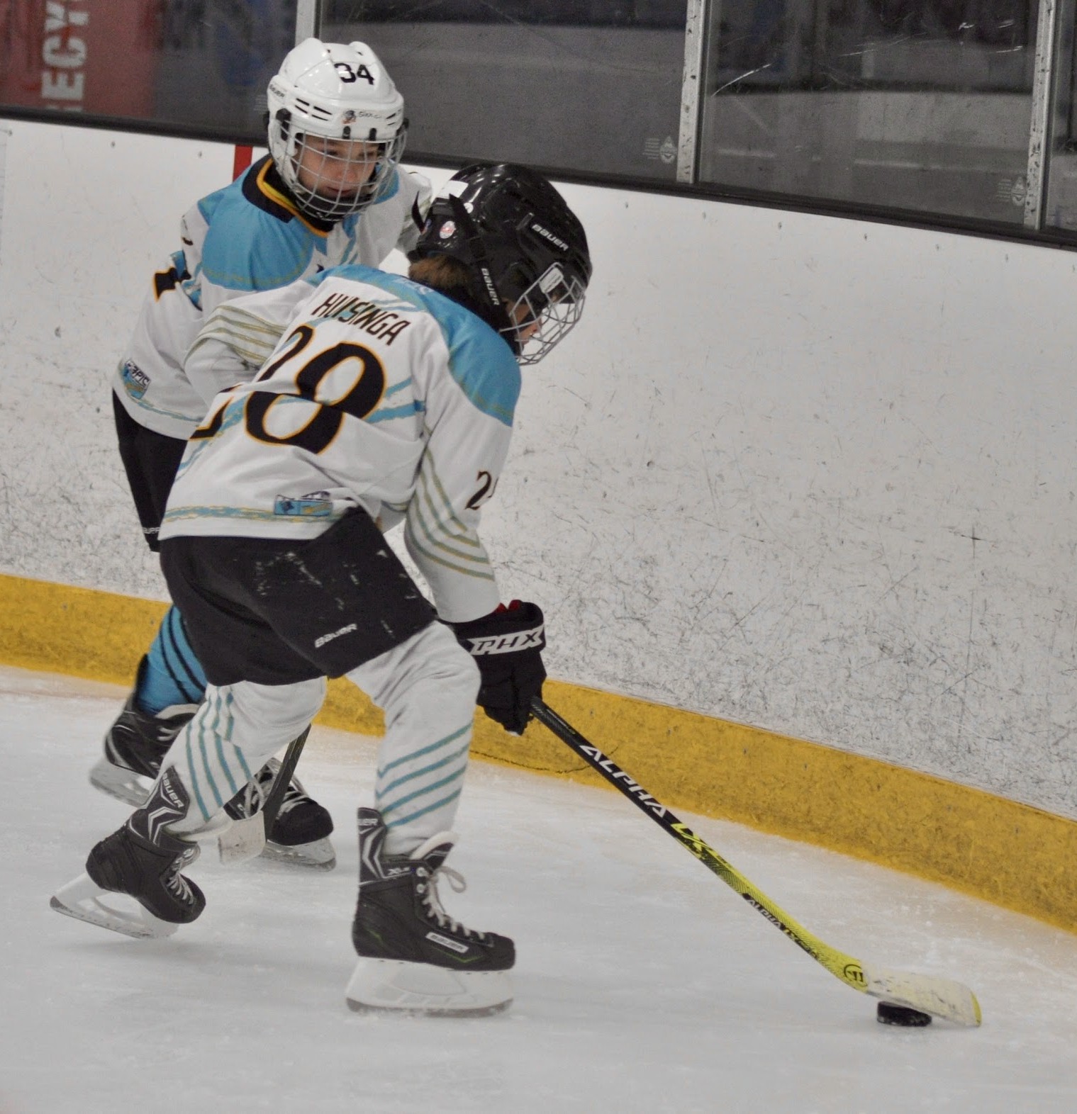 Students in Hockey 3 will learn: forward c-cuts on a circle: right and left, hockey turns with speed in and out of turn: right and left, forward slalom, forward stop and starts, backward v-stop, and lateral marching crossovers: both directions.